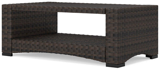 Ashley FurnitureStyle. Comfort. Quality. Value. This outdoor occasional table set really goes to town, giving you the total package for outstanding outdoor living....