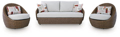 Poolside comfort and style have never been so chic. With this outdoor package, lounging al fresco is effortlessly cool. The intricate beauty of wicker gets a dose of durability with the woven resin design. High-performing fabric helps to keep pillows and cushions looking fresh over time.More About This Product